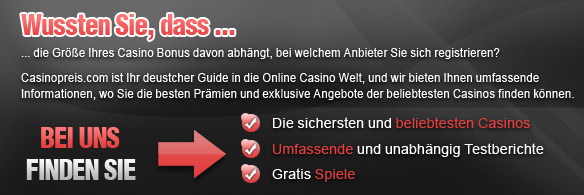 Melden Sie sich jetzt bei Casinopreis.com an und erhalten Sie unseren monatlichen Newsletter mit Infos zu aktuellen Bonus Angeboten, speziellen Prämien, Wettbewerben und vielen anderen Aktivitäten hier bei Casinopreis.com